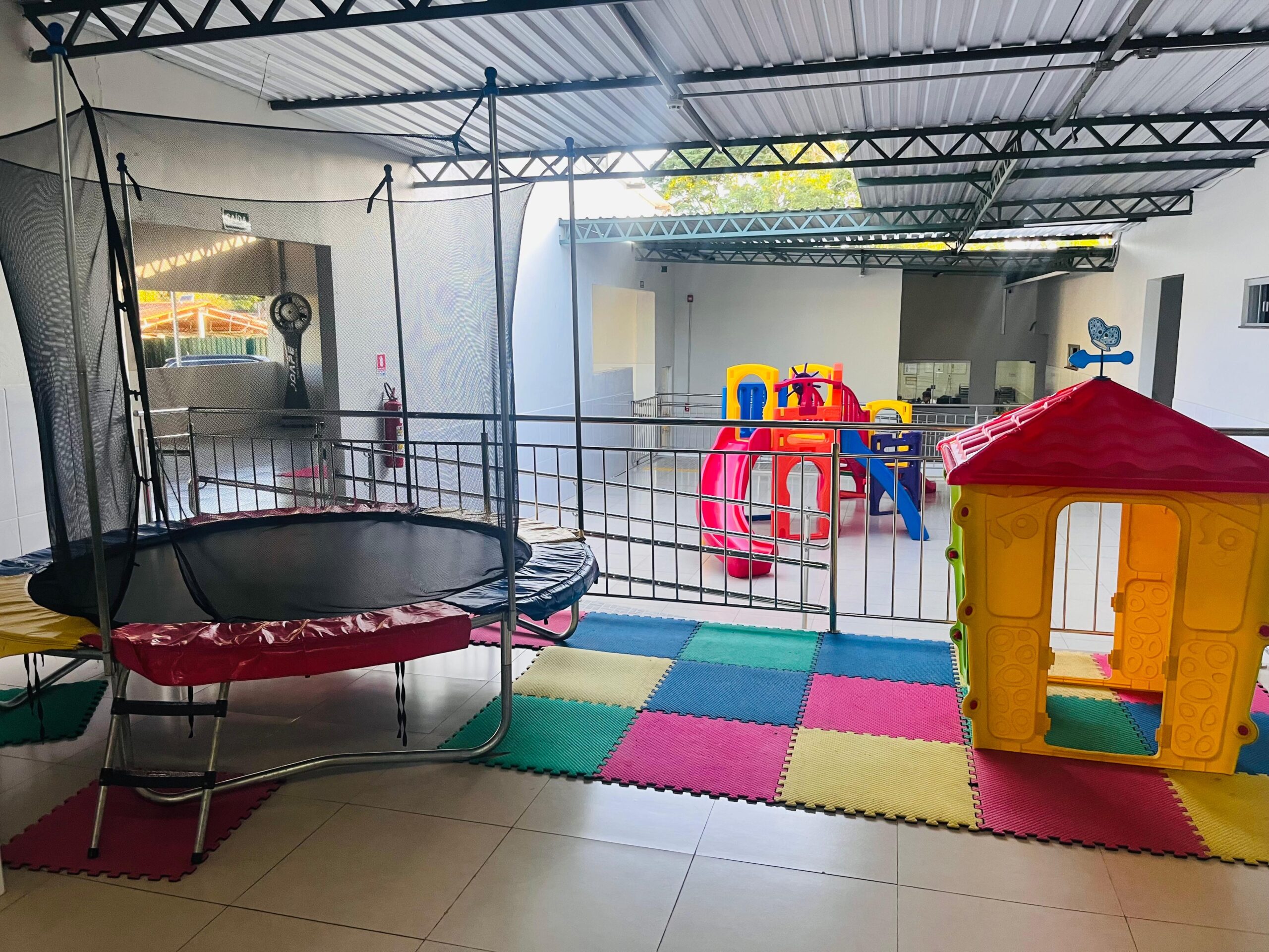 Espaço planejado para lazer, brincadeiras e socialização, essencial para o desenvolvimento físico, mental e emocional.
